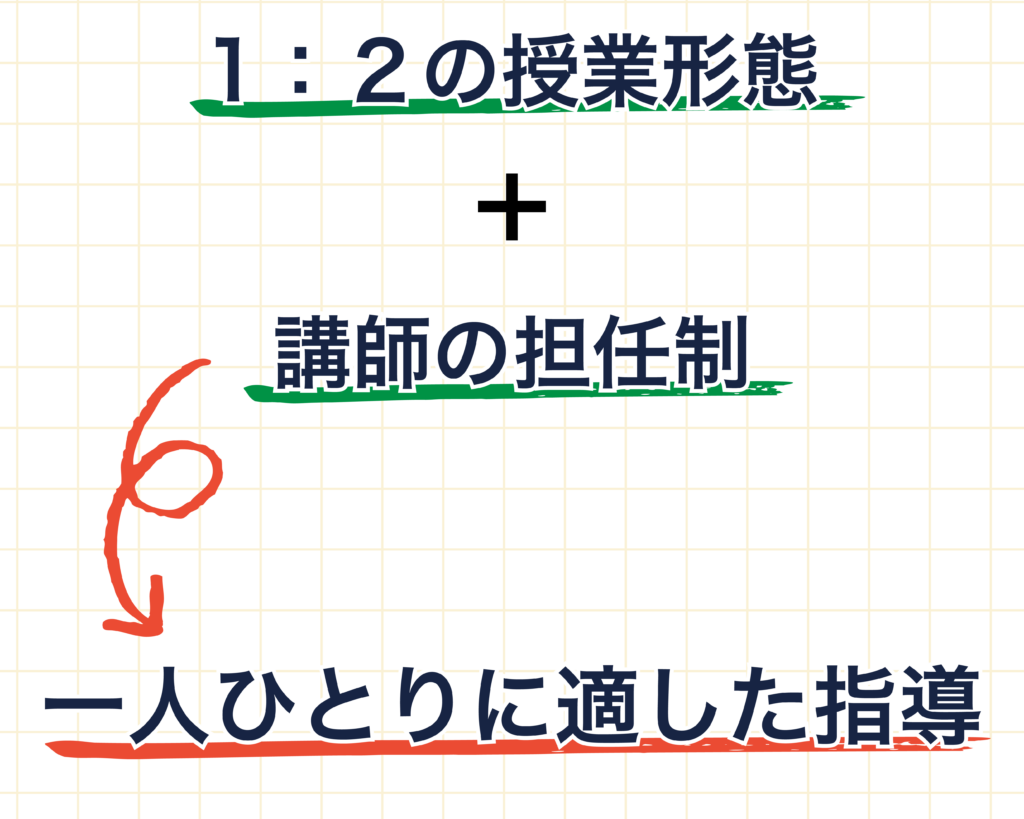 東川口の戸塚・戸塚東の個別指導の『ハイブリッド個別進学塾with』は、講師が1人・生徒が2人の授業形態です。